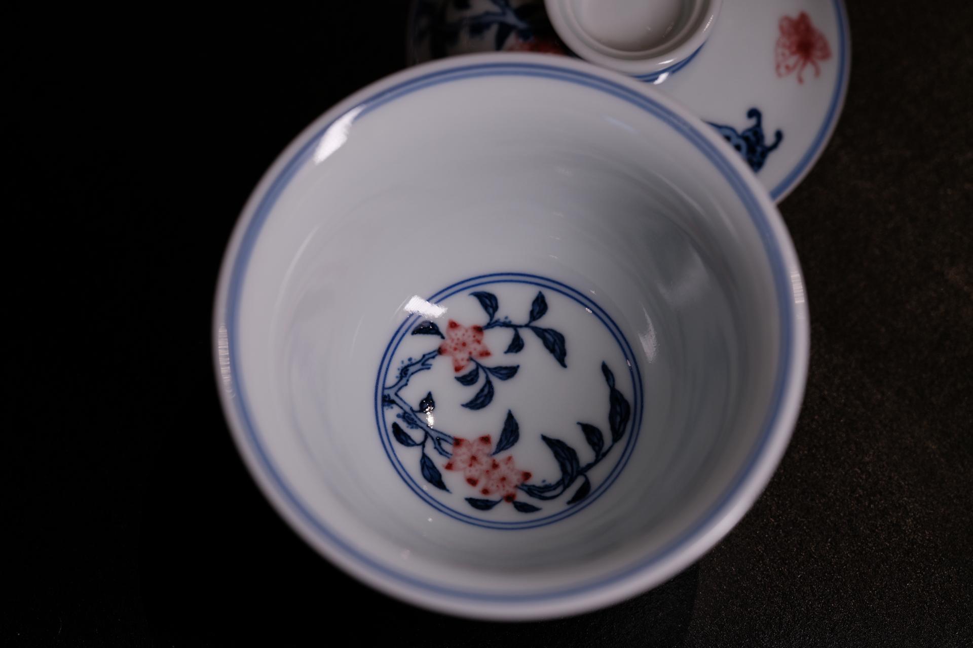 青花釉里红盖碗