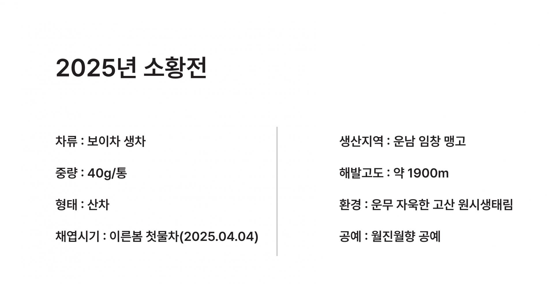 소황전 고수차 특유의 맑고 밀도 있는 향미는
