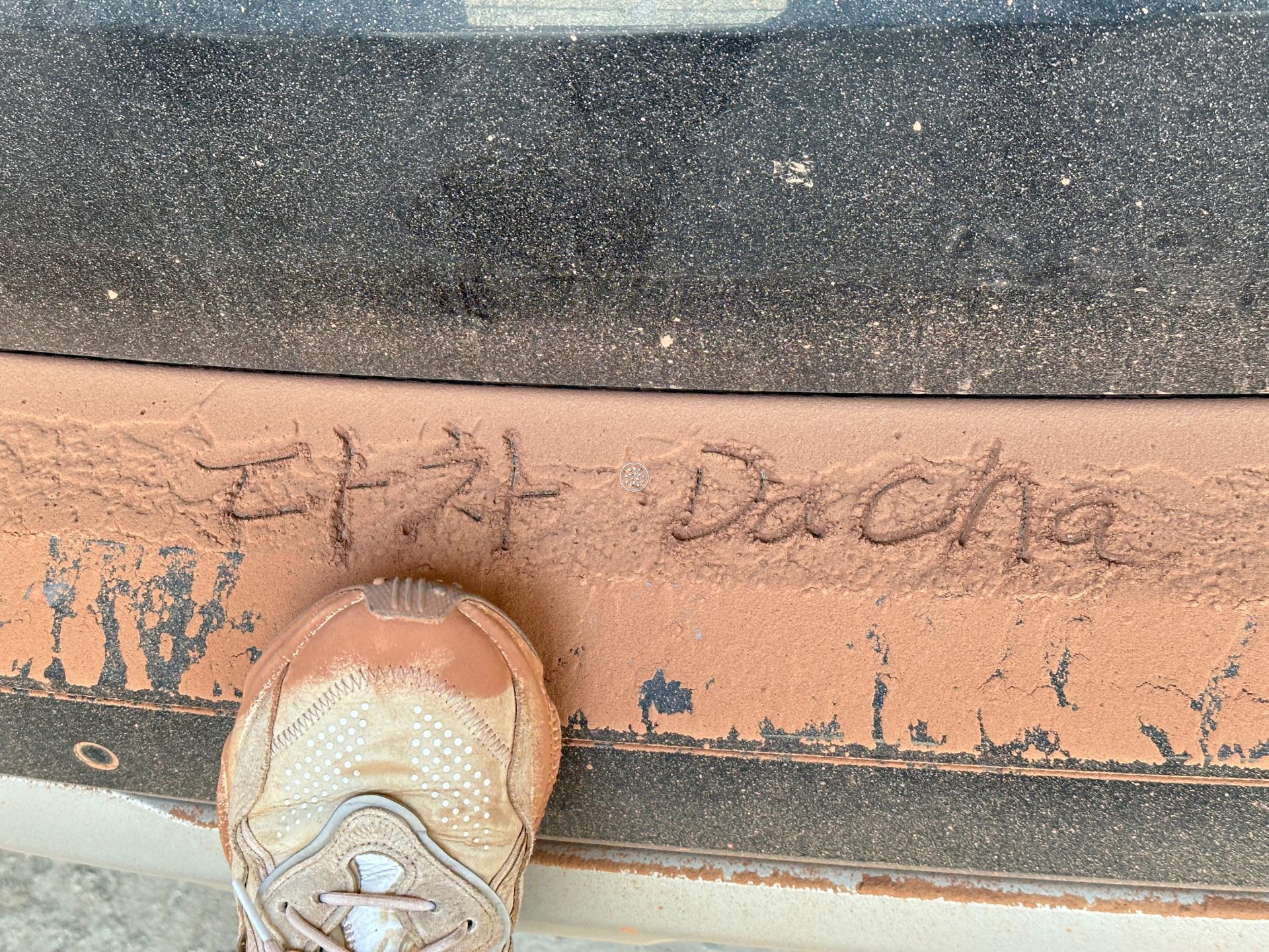붉은 흙먼지가 구름처럼 피어오르며,