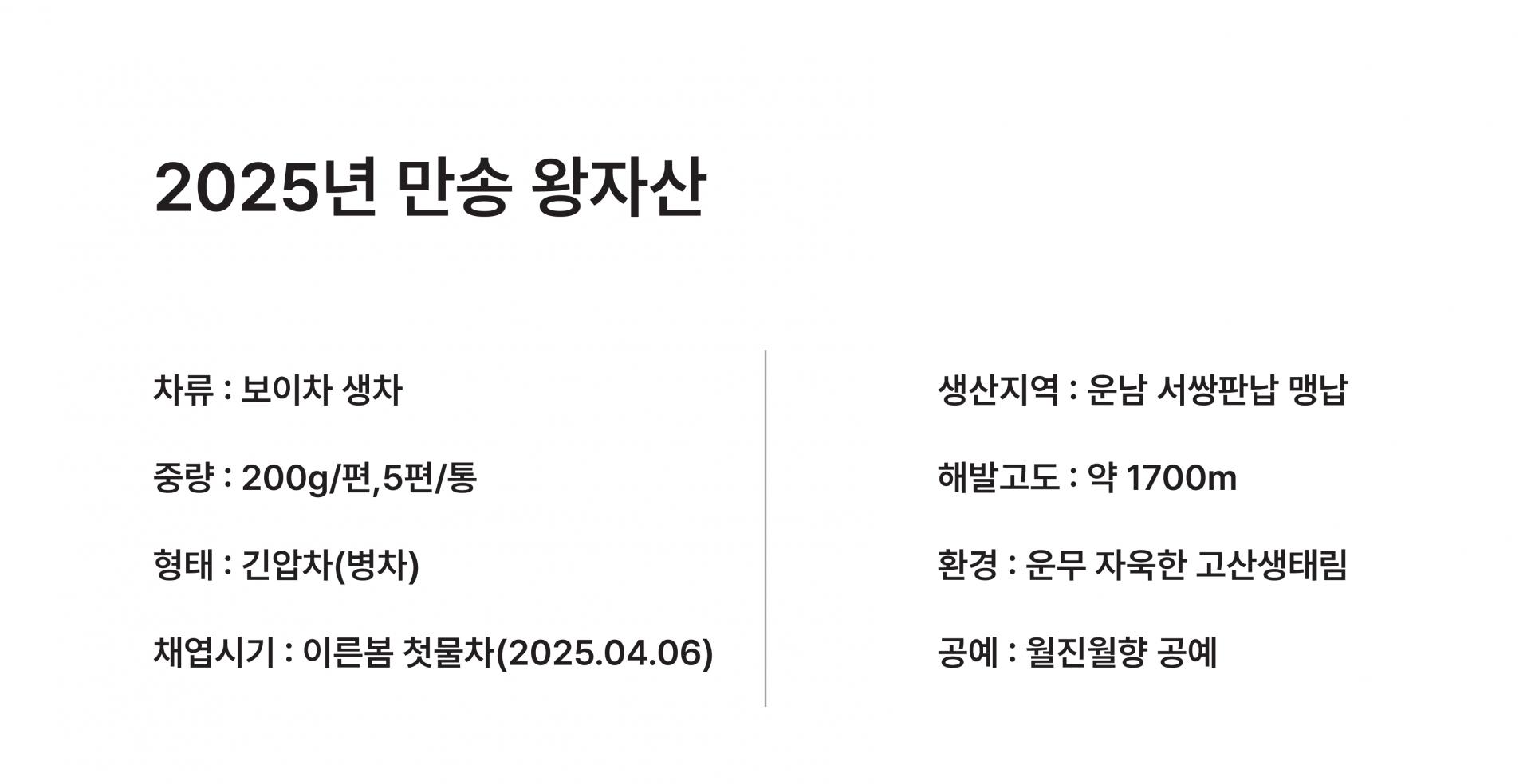 올해 만송 왕자산 차는