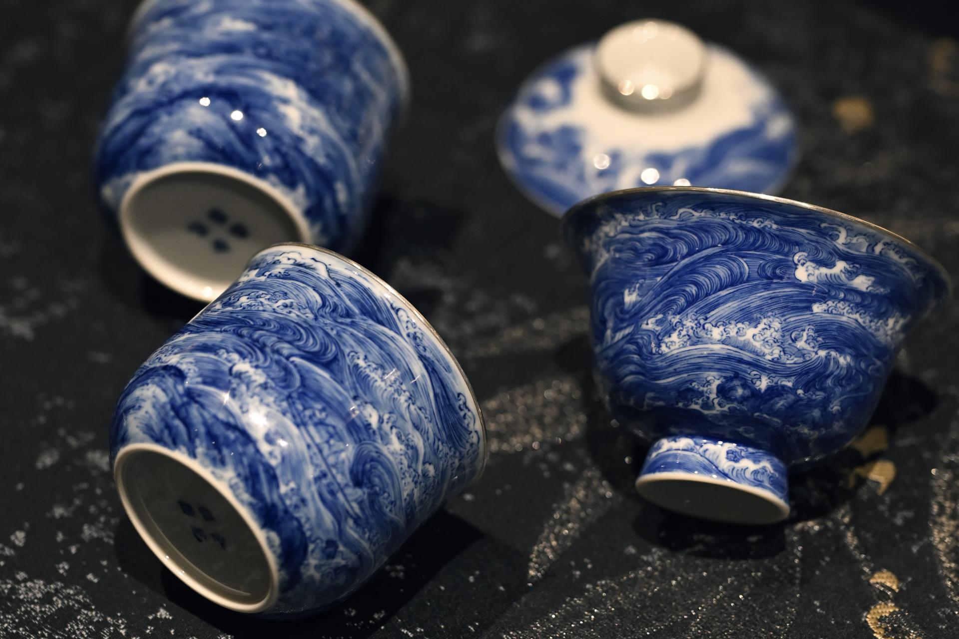 청화 찻잔과 개완입니다.