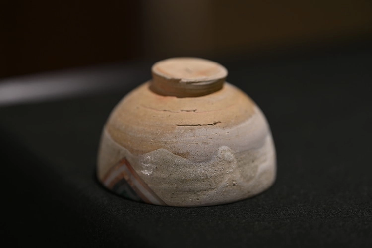 구연부는 다양한 색채석 조각을 얇게 갈아